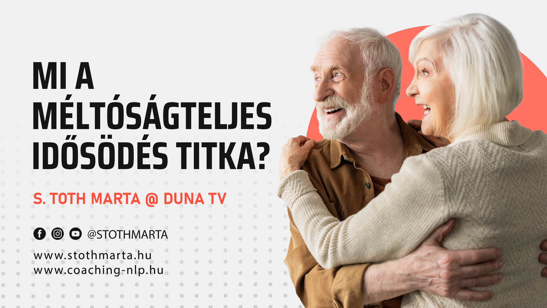 A Duna TV Almárium műsorában beszélgettünk arról, hogy mi a méltóságteljes idősödés titka. Az interjúból megtudhatjuk, hogy mikor van rendben az ember önmagával, hogyan fogadhatjuk el magunkat a kor előrehaladtával külsőleg és lélekben. Lehet-e kortól függetlenül élni az életet?
