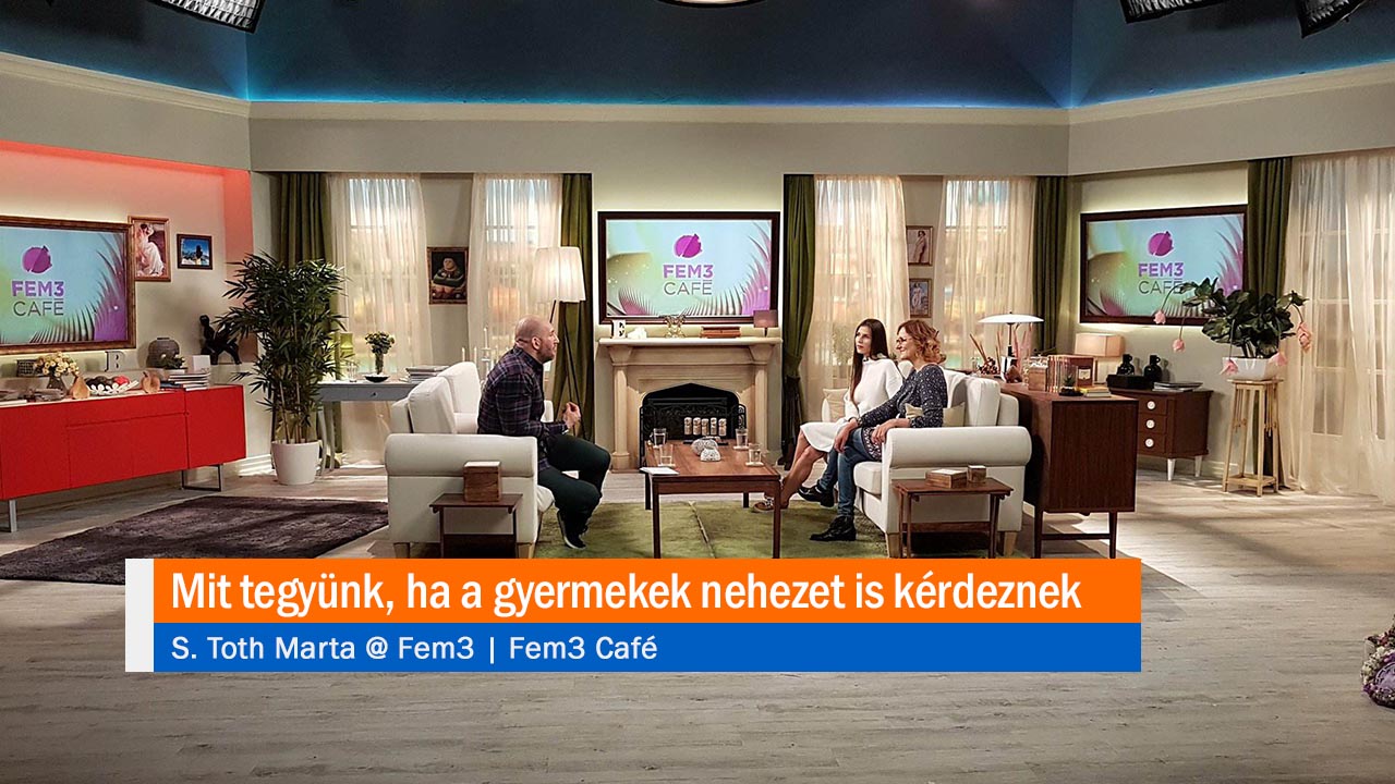 “A FEM3 Café hétfői adásában S. Tóth Márta coach válaszolt a nézők kérdéséire. A szakértő a beszélgetés alatt elárulta, milyen témákban hívták a legtöbbször, ennek kapcsán pedig azt is elmondta, hogyan nyugtathatják meg a szülők azokat a gyerekeket, akik félnek valamitől…” – Fem3 Café